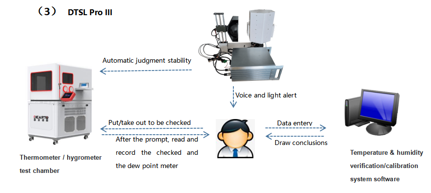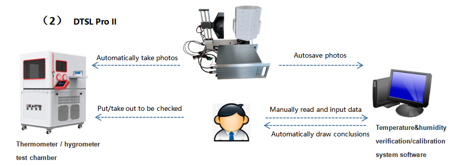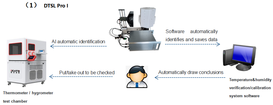 The intelligent temperature and humidity meter automatic verification system is a completely new automatic temperature and humidity meter photo identification verification system independently developed by Taian Dearto. The system is composed of the whole series of temperature and humidity verification chamber (DTSL series, DTLH series), precision dew point instrument, industrial camera, photo robot, database management software (automatic image recognition system) and automatic verification system. The system can realize automatic unattuned verification of temperature and humidity meter, support multi-point automatic temperature control, humidity control,temperature and humidity meter automatic positioning, automatic photography, automatic identification, automatic calculation,automatic determination, and can be used for automatic verification of mechanical temperature and humidity meter and digital temperature and humidity meter.