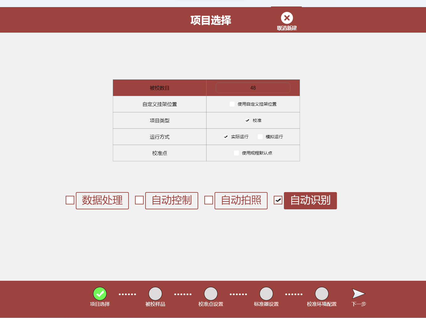 The system automatically controls the temperature and humidity of the calibration chamber, monitors the temperature and humidity values of the calibration chamber in real time through a dew point meter, and automatically makes stability judgments. After the stability conditions are met, the system automatically controls the camera robot and camera to locate each thermometer under inspection in order to take photos and archive them. When all calibration points are completed and the data processing page is entered, the user only needs to spend a few minutes to enter the inspected data based on the inspected pictures, and the system will automatically calculate the verification results and give the calibration conclusion.